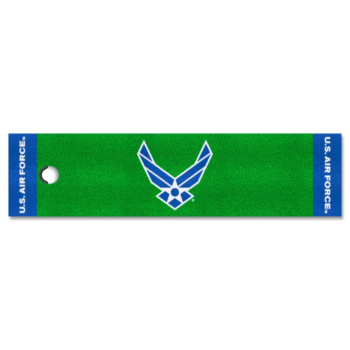 | U.S. Air Force Putting Green Mat - 1.5ft. x 6ft. Realistic putting surface (11* on golf Stimpmeter) Includes putting target barrier/backstop Durable vinyl backing keeps mat in place 100% Nylon Face Doubles as a runner when not in use Officially licensed and chromojet printed in true team colors U.S. Air Force in N/A |