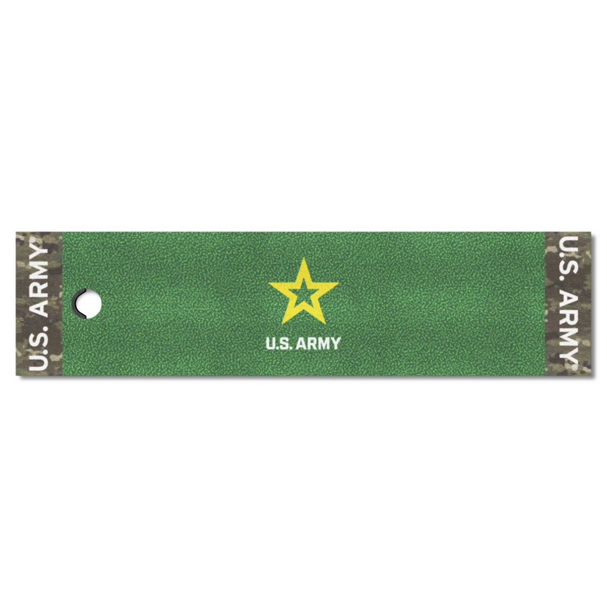 | U.S. Army Putting Green Mat - 1.5ft. x 6ft. Realistic putting surface (11* on golf Stimpmeter) Includes putting target barrier/backstop Durable vinyl backing keeps mat in place 100% Nylon Face Doubles as a runner when not in use Officially licensed and chromojet printed in true team colors U.S. Army in N/A |