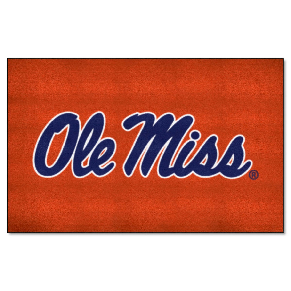 | Ole Miss Rebels Ulti-Mat Rug - 5ft. x 8ft. 9 Ounce, 100 % Nylon Face Recycled vinyl backing for a durable and longer-lasting product Machine made and tufted in the USA Non-skid backing with serged borders for added durability Machine washable; vacuum regularly and spot clean for any easy and quick clean Officially licensed and chromojet-printed in true team colors for vibrant, lasting color University of Mississippi in Mississippi |