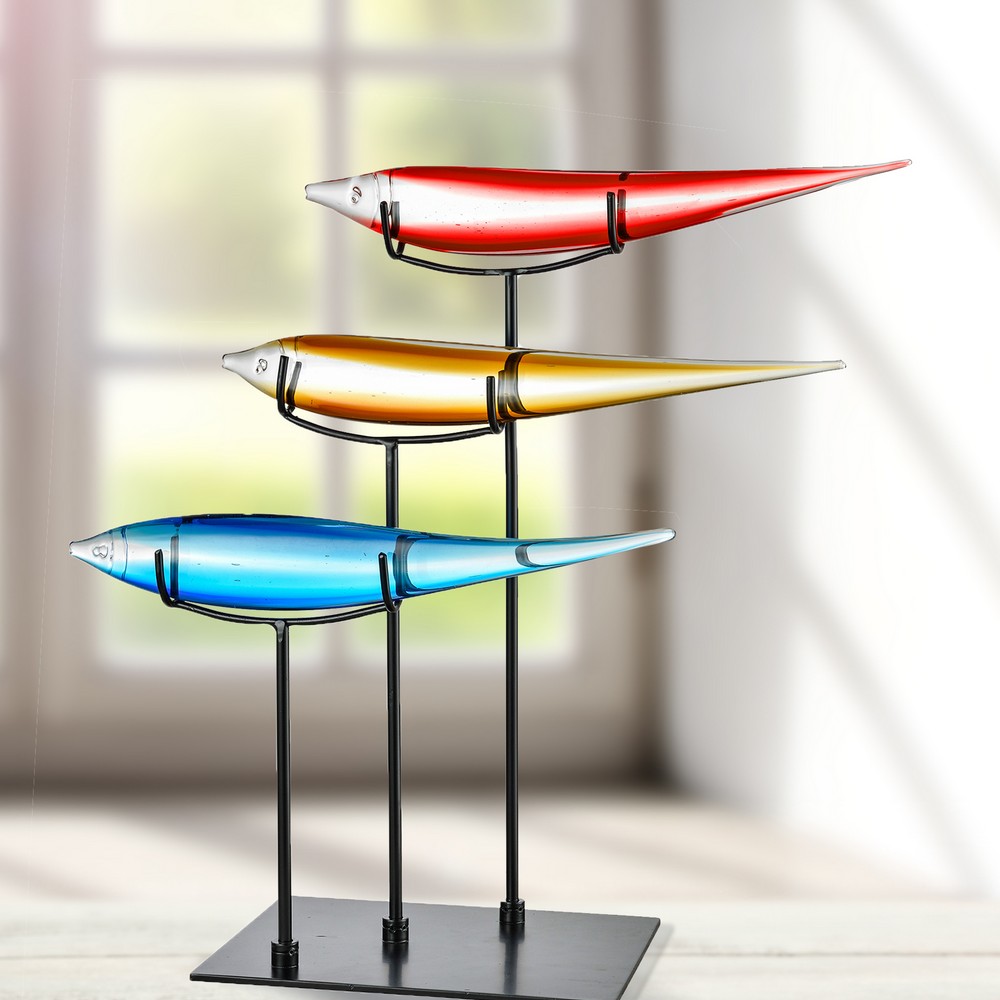 Dale Tiffany 3 Multicolor Fish Handcrafted Art Glass Figurine Black