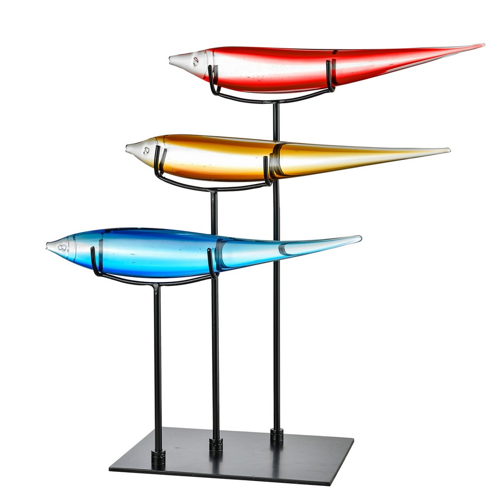 | Always at the forefront of home style trends, Dale Tiffany is pleased to present our new collection of Fish Sculptures. Each sculpture portrays a school of stylized, elongated tropical fish that are Handcrafted using our superior quality art glass. Grouped together, each fish seem to be swimming in synchronous motion with the rest, giving the overall piece an appearance of fluid motion. Standing over 1 ½ feet in height, these unique pieces command attention and will easily become the focal point in any room. This 3 Piece Multicolored Fish Sculpture features 3 bright fish in sunny shades of amber, red and blue. Each fish sits in a bracket atop a stake that is mounted on a rectangular base. The perfect gift for the aquatic enthusiast or anyone who appreciates the new and exotic, our Art Glass Fish Sculptures make the perfect pet…no care or feeding required.Dale Tiffany Sculpture / Figurine Bulb Type: Not Applicable Bulb Wattage: Not Applicable Shade Material: Not Applicable Base Material: Metal Not Applicable Not Applicable Switch |