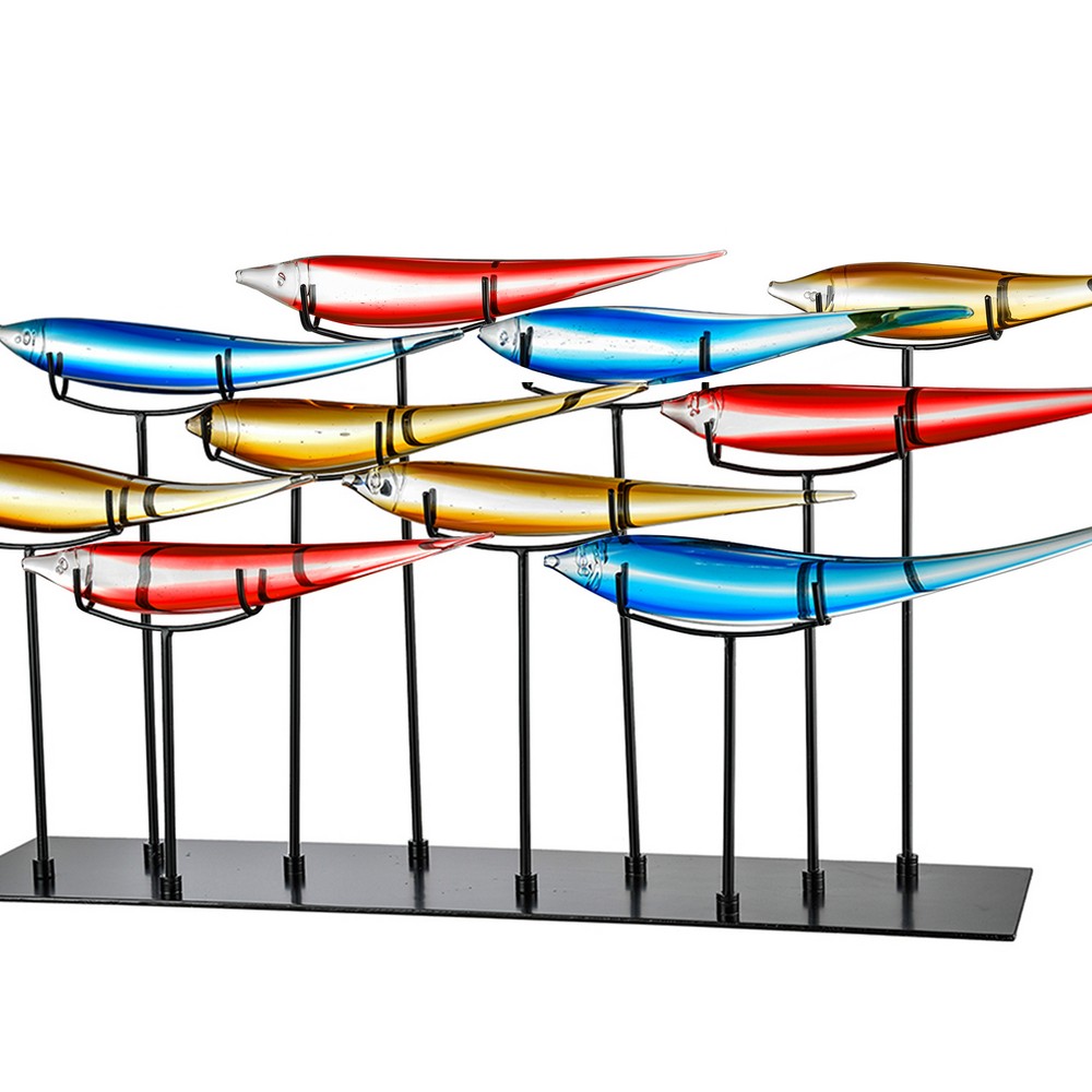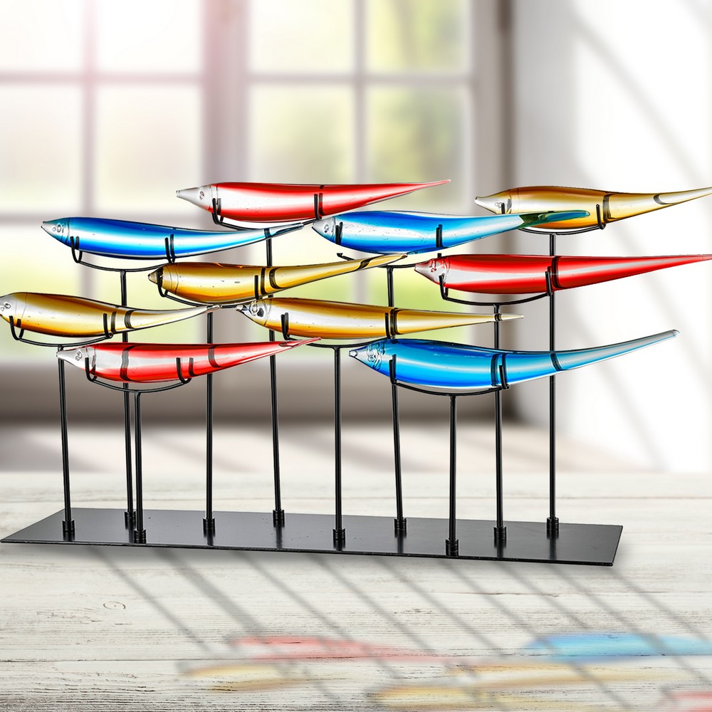 | Always at the forefront of home style trends, Dale Tiffany is pleased to present our new collection of Fish Sculptures. Each sculpture portrays a school of stylized, elongated tropical fish that are Handcrafted using our superior quality art glass. Grouped together, each fish seem to be swimming in synchronous motion with the rest, giving the overall piece an appearance of fluid motion. Standing over 1 ½ feet in height, these unique pieces command attention and will easily become the focal point in any room. This 10 Piece Multicolor Fish Sculpture features 10 bright fish in sunny shades of amber, red and blue. Each fish sits in a bracket atop a stake that is mounted on a rectangular base. The perfect gift for the aquatic enthusiast or anyone who appreciates the new and exotic, our Art Glass Fish Sculptures make the perfect pet…no care or feeding required.Dale Tiffany Sculpture / Figurine Bulb Type: Not Applicable Bulb Wattage: Not Applicable Shade Material: Not Applicable Base Material: Metal Not Applicable Not Applicable Switch |