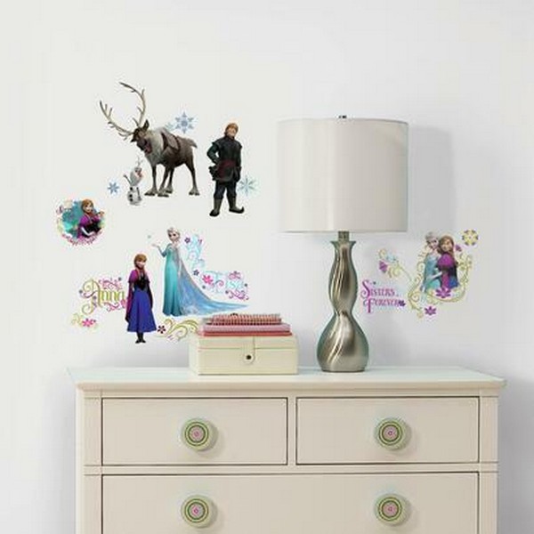 | Embark on the journey alongside your favorite characters from Frozen with these officially licensed wall decals. easy to install and change they can be easily applied and moved around by decorors of any age. To apply simply peel each decal from the backing and stick it to any smooth fl surface. A gre decoring idea for Frozen fans!DISNEY Match: Colors: multi GLITTER Roll Specs : 4 sheets 10 inches X 18 inches Number of Decals : 36 |