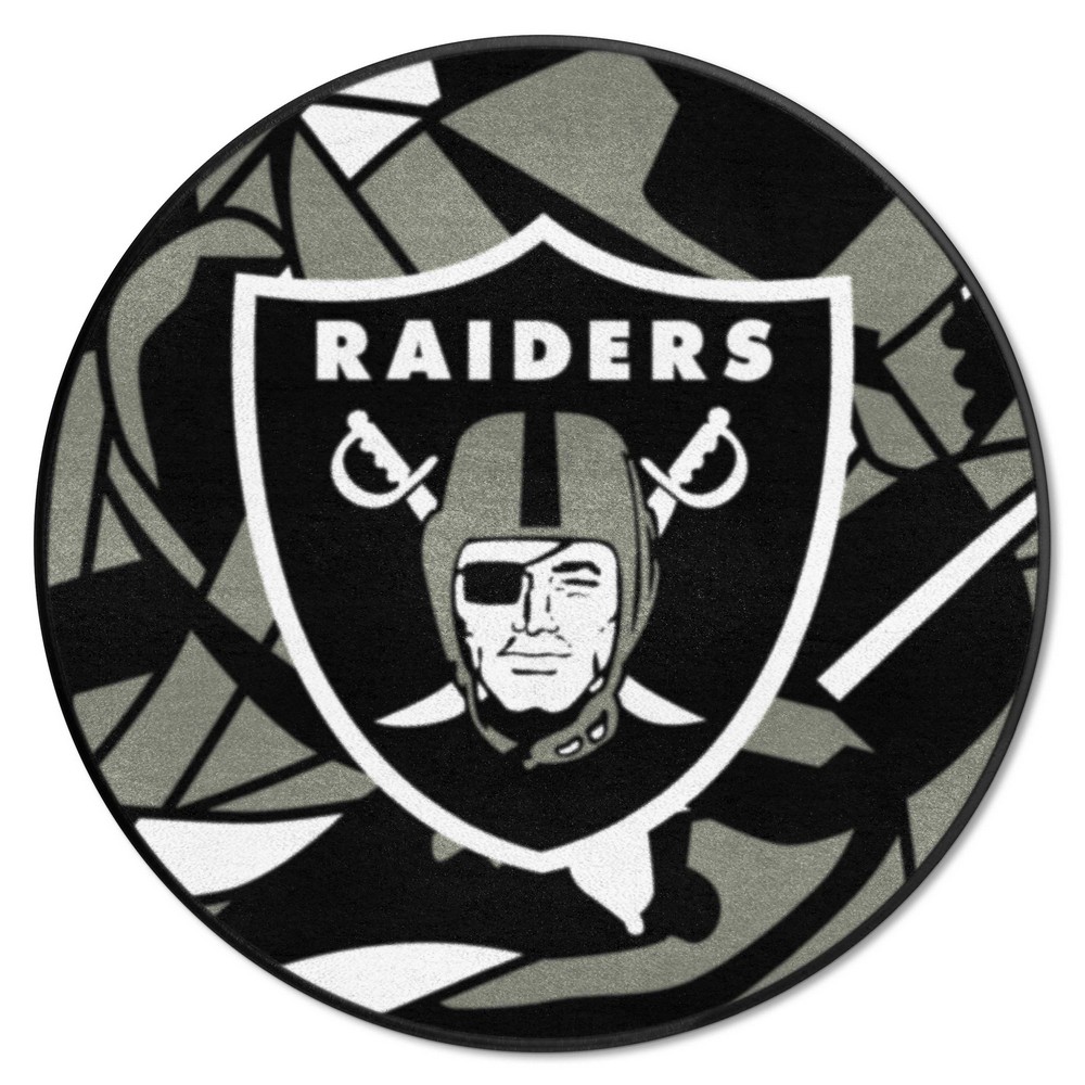 | Las Vegas Raiders Roundel Rug - 27in. Diameter XFIT Design 9 Ounce, 100 % Nylon Face Recycled vinyl backing for a durable and longer-lasting product Machine made and tufted in the USA Non-skid backing with taped borders for added durability Machine washable; vacuum regularly and spot clean for any easy and quick clean Officially licensed and chromojet-printed in true team colors for vibrant, lasting color NFL - Las Vegas Raiders in Nevada NFL National Football League |