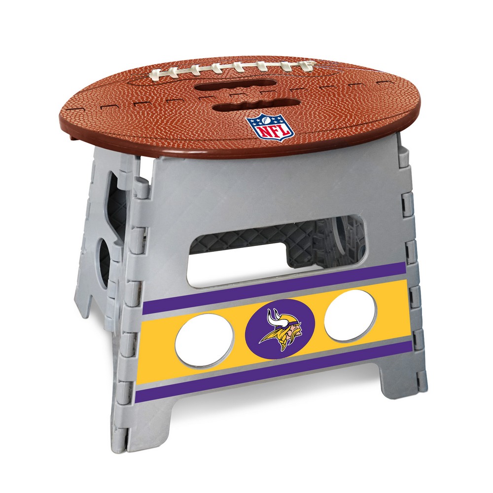 | Minnesota Vikings Folding Step Stool - 13in. Rise Supports 250 lbs. Folds flat for easy storage Handle makes transportation easy Made of light weight durable plastic Rubber feet means stool stays in place True Team Colors NFL - Minnesota Vikings in Minnesota NFL National Football League |