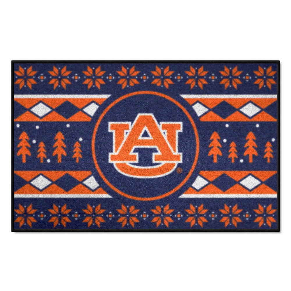 | Auburn Tigers Holiday Sweater Starter Mat Accent Rug - 19in. x 30in. 9 Ounce, 100 % Nylon Face Recycled vinyl backing for a durable and longer-lasting product Machine made and tufted in the USA Non-skid backing with serged borders for added durability Machine washable; vacuum regularly and spot clean for any easy and quick clean Officially licensed and chromojet-printed in true team colors for vibrant, lasting color Auburn University in Alabama |