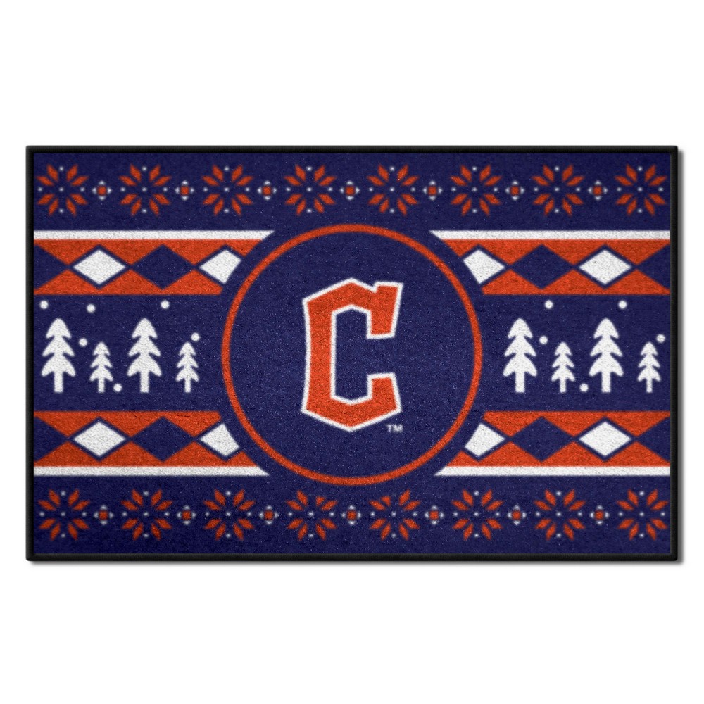 | Cleveland Guardians Holiday Sweater Starter Mat Accent Rug - 19in. x 30in. 9 Ounce, 100 % Nylon Face Recycled vinyl backing for a durable and longer-lasting product Machine made and tufted in the USA Non-skid backing with serged borders for added durability Machine washable; vacuum regularly and spot clean for any easy and quick clean Officially licensed and chromojet-printed in true team colors for vibrant, lasting color MLB - Cleveland Guardians in Ohio MLB Major League Baseball |