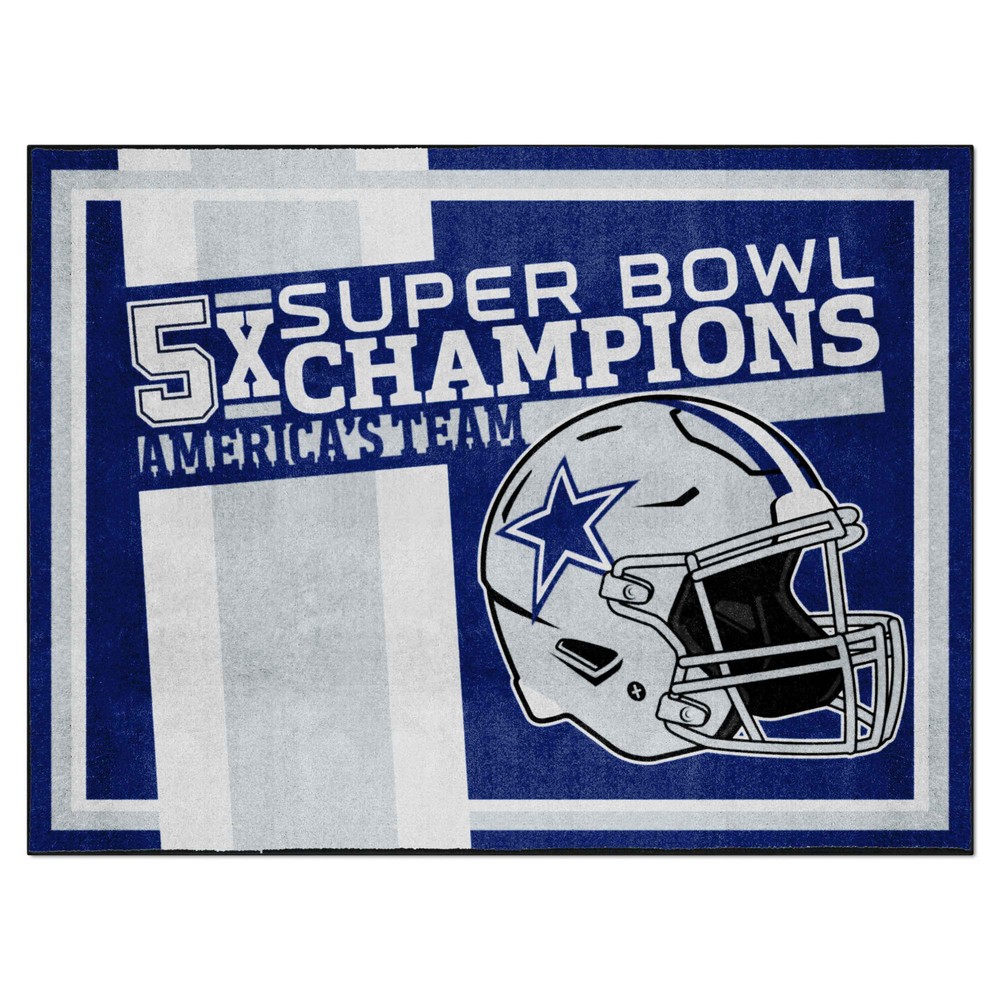 | Dallas Cowboys Dynasty 8ft. x 10ft. Plush Area Rug 23.5 oz., 100% Nylon Face Duragon latex backing for a durable and longer-lasting product Machine made in the USA Non-skid backing to ensure stability Vacuum regularly and spot clean Chromojet-printed in true team colors NFL - Dallas Cowboys in Texas NFL National Football League |