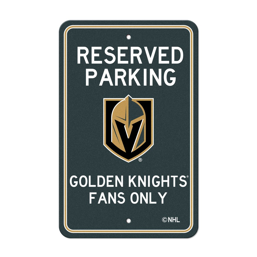 | Vegas Golden Knights Team Color Reserved Parking Sign Decor 18in. X 11.5in. Lightweight Plastic construct is durable and lightweight 2 pre-drilled holes for easy hanging Printed with outstanding EFI ink for durability and vibrant coloring Great for indoor or outdoor Made in the USA Officially Licensed NHL - Vegas Golden Knights in Nevada NHL National Hockey League |