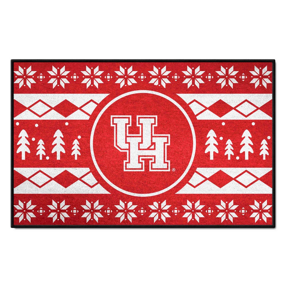 | Houston Cougars Holiday Sweater Starter Mat Accent Rug - 19in. x 30in. 9 Ounce, 100 % Nylon Face Recycled vinyl backing for a durable and longer-lasting product Machine made and tufted in the USA Non-skid backing with serged borders for added durability Machine washable; vacuum regularly and spot clean for any easy and quick clean Officially licensed and chromojet-printed in true team colors for vibrant, lasting color University of Houston in Texas |