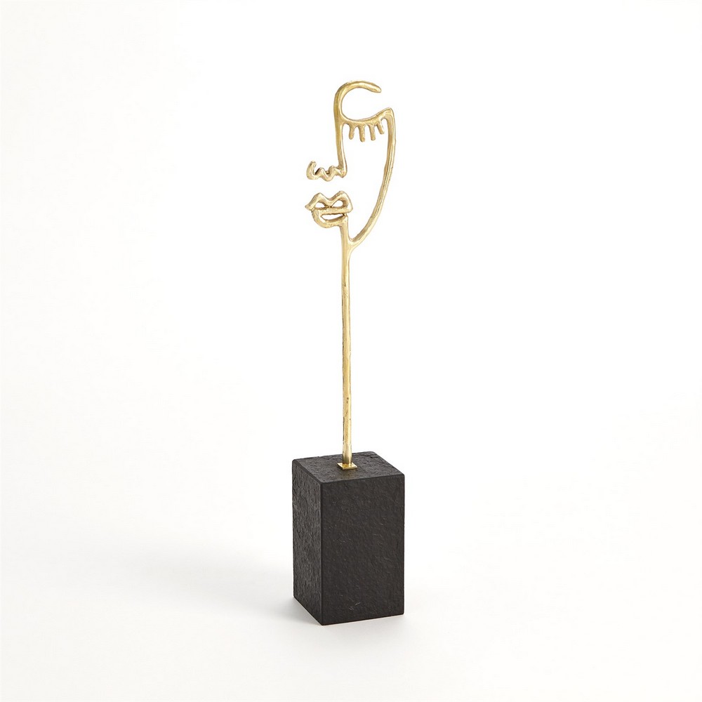 The Scribble Sculpture Collection is made of iron with a polished brass finish on a flamed black marble base.