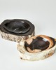 Sizes may vary 12"L x 9.5"W x 2.5"H (13.2 lbs) Petrified Wood Beige and Black Dust with dry cloth Product is not Food Safe Our Petrified Wood Bowls are created from petrified wood logs - a process that slows the decay of wood and allows minerals to fill void spaces in the wood, giving it a stone like appearance. Each will be unique in shape and color.