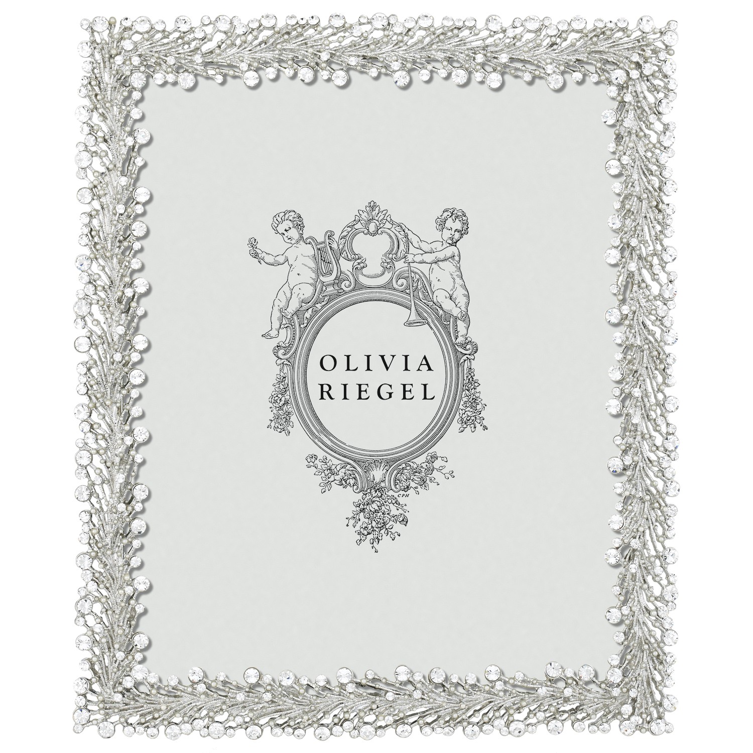 | This silver-tone metal finish frame is hand-detailed with faux pearls and clear Swarovski® crystals. Exclusive designs, created with a touch of elegance by Olivia Riegel. |