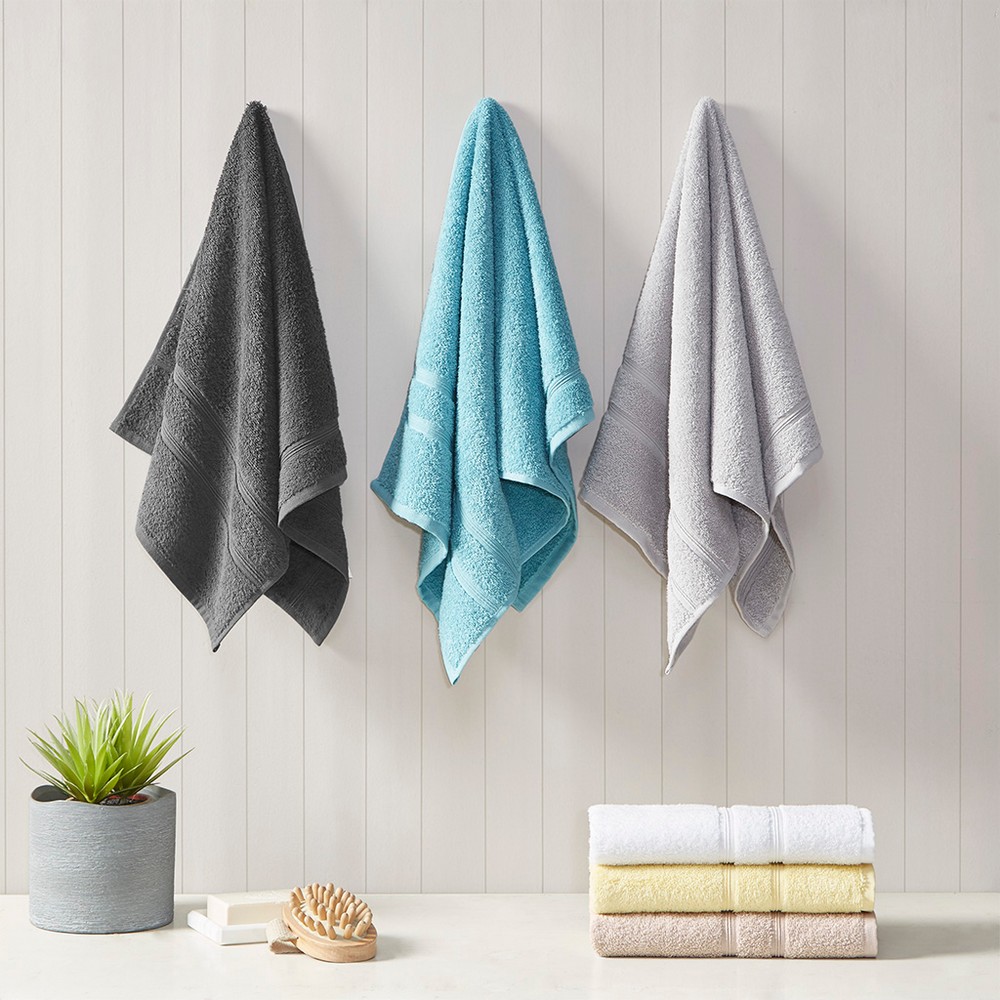 | 510 Design 6-Piece 2 Bath Towels: 27"W x 52"L(2) 2 Hand Towels: 16"W x 30"L(2) 2 Wash Towels: 13"W x 13"L(2) 100% Aegean Turkish Cotton Solid With Dobby Border 500gsm Casual Style Includes 6 Piece(s) Wash before first use. Machine wash gentle cycle with like colors. Do not bleach. Do not wash with sharp items that may pull the towel fibers, such as zippers or hooks. To maintain the quality and performance of your towels, avoid the use of fabric so Dry off with the bliss comfort of our 510 Design Aegean 100% Turkish Cotton 6 Piece Towel Set. Made from 100% Turkish cotton, these towels are constructed in 500gsm weight to create a light and soft feel, while absorbent and quick dry at the same time. These towels are also finished with a SILVADURâ„¢ antimicrobial treatment providing built in freshness protection, inhibiting growth of odor causing bacteria, and keeping linen newer, longer. In addition, these towels are also Made in Green by OEKO-TEX certified, meaning it does not contain any harmful substances or chemicals while also using sustainable processes and socially responsible working conditions, for the best in wellness and well-being. Each towel is also finished with a dobby border for a stylish touch and is machine washable for easy care. Set includes: 2 Bath Towels 27"x52", 2 Hand Towels 16"x30", and 2 Wash Towels 13"x13". |