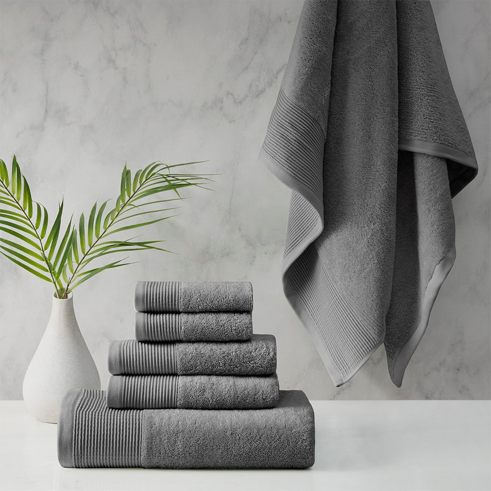 Nuage Cotton Tencel Blend Antimicrobial 6 Piece Towel Set Charcoal
