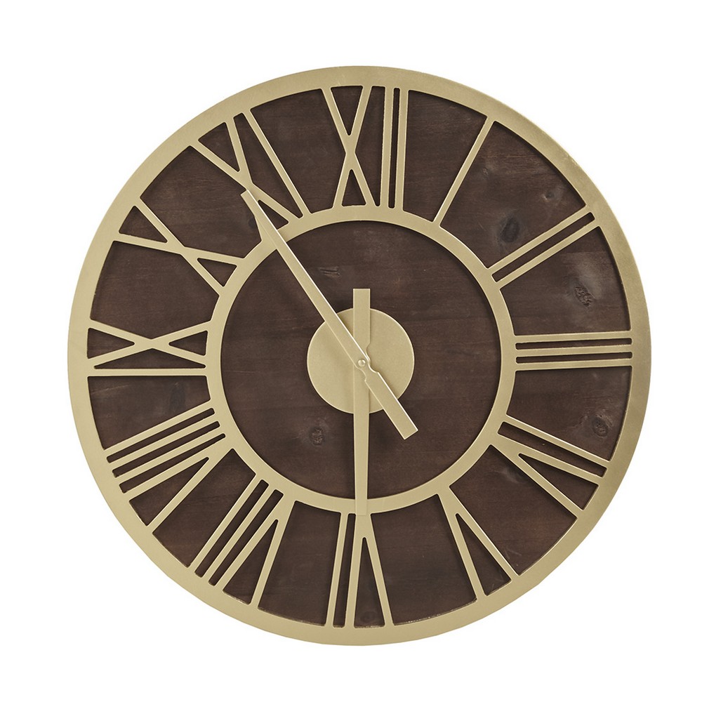 | Madison Park See below 1 Wall Clock: 23.6"W x 23.6"H x 1.77"D MDF: 90% Veneer: 10% Modern/Contemporary Style Includes 1 Piece(s) Spot clean only The Madison Park Mason 23.6" Wood Wall Clock offers a contemporary glam charm to your home decor. This round clock features a gold metal frame with Roman numerals on a dark brown wood grain MDF, creating modern and stylish look. A hanger hook on the reverse makes the clock easy to hang in any room. Measuring 23.6", this large wall clock has quartz movement and brings a modern update to your decor. 1 AA battery (sold separately) is needed. Due to nature of real fir wood surface, product face will vary with some discoloration and wood knots (dot-like markings) unique to each piece. |