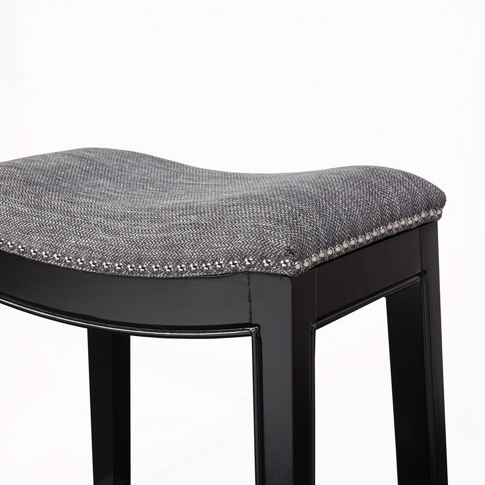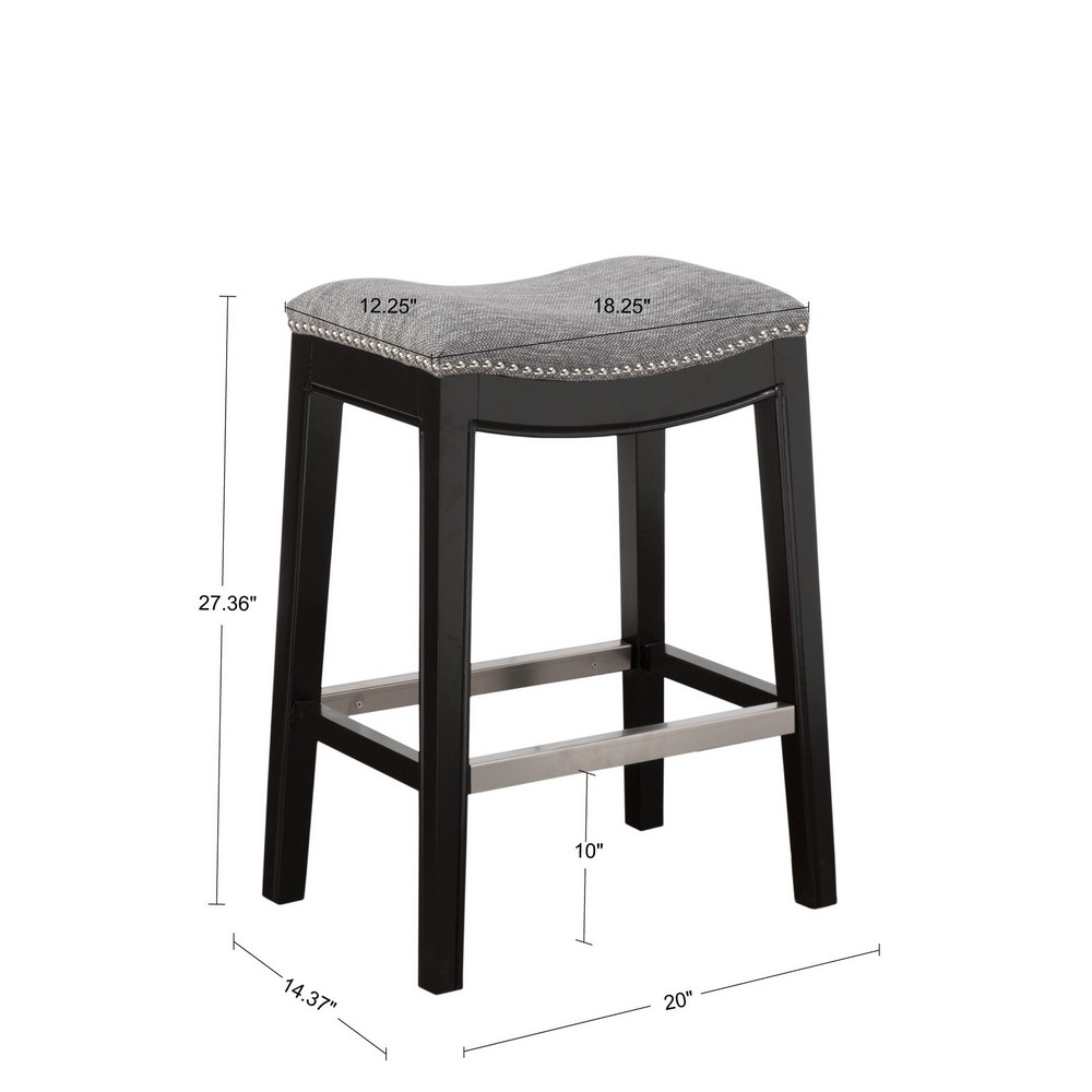 | Madison Park See below 1 Counter Stool: 20"W x 14.37"D x 27.36"H Seat Dimension: 18.25"W x 12.25"D x 27.36"H Seat Cushion Thickness: 1.5" Legs Height: 25" Footrest to Floor Height: 10" Maximum Weight Capacity: 300Lbs Wood: Select hardwoods and plywood frame, Birch legs Wood Finish: Black Noir Fabrication: 70% Poly, 20% Rayon, 10% Linen Filling: High Density Foam Modern/Contemporary Style Includes 1 Piece(s) SPOT CLEAN ONLY This backless counter stool reinvents the familiar lines of classic Italian design with comfort and value in mind. Assembly required and tools included |