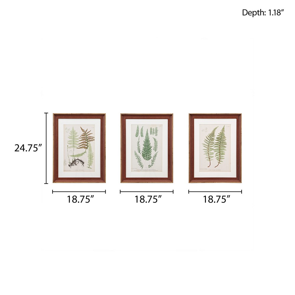 Lady Fern Collection Botanical Illustration 3piece Framed Glass and Single Matted Wall Art Set Green