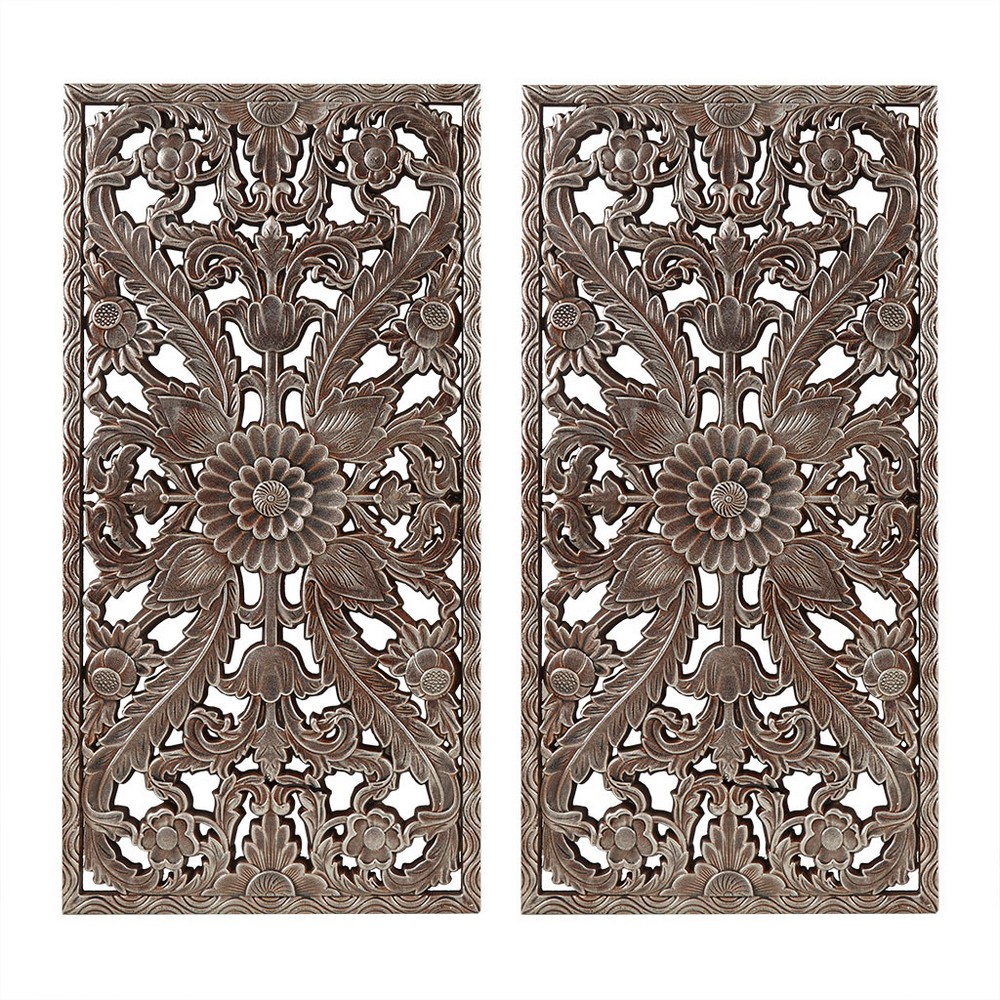 Botanical Panel Distressed Carved Wood 2piece Wall Decor Set Bronze