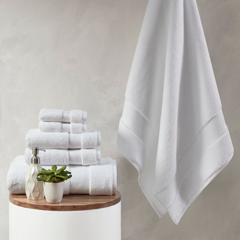 Our Madison Park Signature Splendor 1000 GSM 100% Cotton 6 Piece Towel Set provides a true luxurious addition to your bathroom essentials. This 100% cotton towel set features oversized bath towels with 1000gsm construction and 900gsm hand/wash towels that ensure a premium quality and heavy weight, for superior comfort. The long staple, zero twist cotton construction creates an incredibly soft plush feel, while adding more density and absorbency to each towel. These cotton towels are also Made in Green by OEKO-TEX certified, meaning they do not include any harmful substances or chemicals while also using sustainable processes and socially responsible working conditions, for the best in quality comfort and wellness. Machine washable for easy care, this cotton bath towel set comes in soft stain resistant colors and brings a true spa luxury touch to any bathroom. Set includes: 2 oversized 30x58" bath towels, 2 large 16x30" hand towels, and 2 standard 13x13 wash towels.
