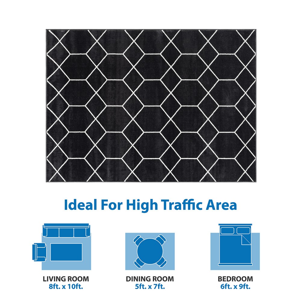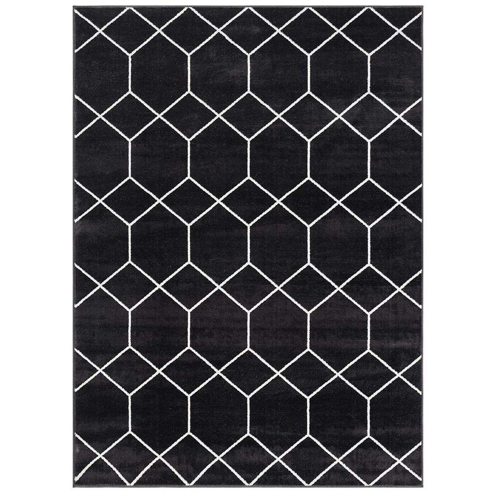 Averie Trellis Geometric Woven Area Rug Black Cream