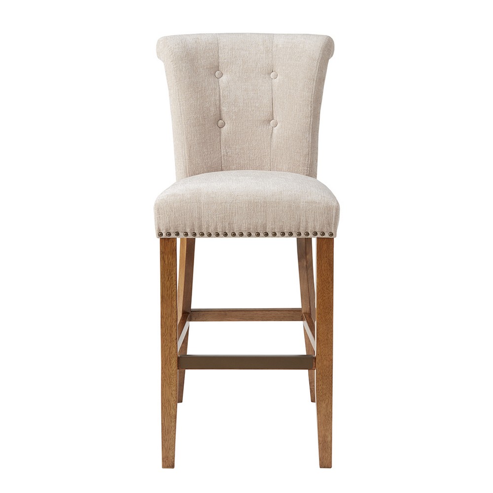 | Madison Park See below 1 Bar Stool: 21.25"W x 26.75"D x 43.75"H Seat: 19"W x 17.5"D x 30"H Distance Between Legs (Front to Front): 15.25" Distance Between Legs (Front to Back): 19.5" Distance Between Legs (Back to Back): 15.5" Material: Rubberwood,solid wood Fabrication: 100% Polyester Filling: High Density Foam Wood Finish: Ink & Ivy Elm Metal Finish: Bronze Kickplate Nailheads: Bronze Transitional Style Includes 1 Piece(s) SPOT CLEAN ONLY Elegant bronze nail heads add an extra touch of dignified style to this roll back button tufted bar stool. Assembly required. |