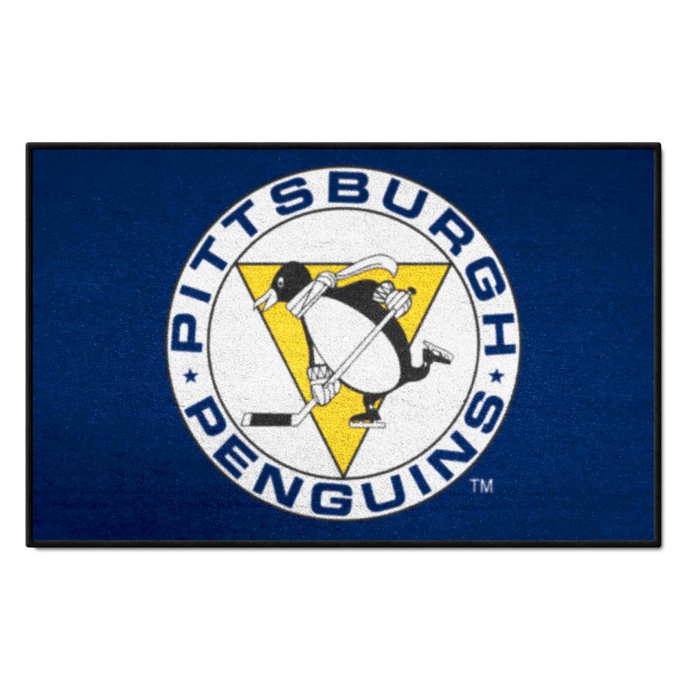 | Retro NHL Pittsburgh Penguins Starter Mat Accent Rug - 19in. x 30in. 9 Ounce, 100 % Nylon Face Recycled vinyl backing for a durable and longer-lasting product Machine made and tufted in the USA Non-skid backing with serged borders for added durability Machine washable; vacuum regularly and spot clean for any easy and quick clean Officially licensed and chromojet-printed in true team colors for vibrant, lasting color NHLV - Pittsburgh Penguins in Pennsylvania NHL National Hockey League |