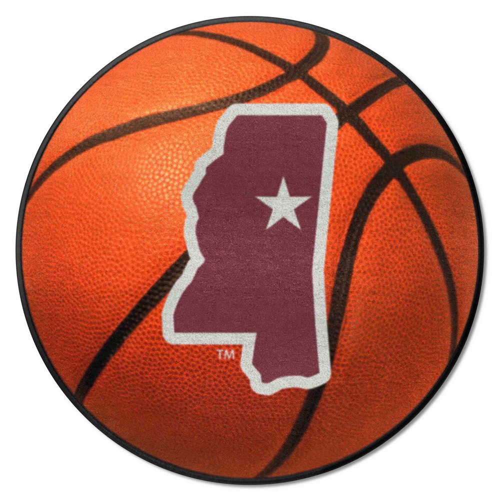 | Mississippi State Bulldogs Basketball Rug, State Logo - 27in. Diameter 9 Ounce, 100 % Nylon Face Recycled vinyl backing for a durable and longer-lasting product Machine made and tufted in the USA Non-skid backing with taped borders for added durability Machine washable; vacuum regularly and spot clean for any easy and quick clean Officially licensed and chromojet-printed in true team colors for vibrant, lasting color Mississippi State University in Mississippi |
