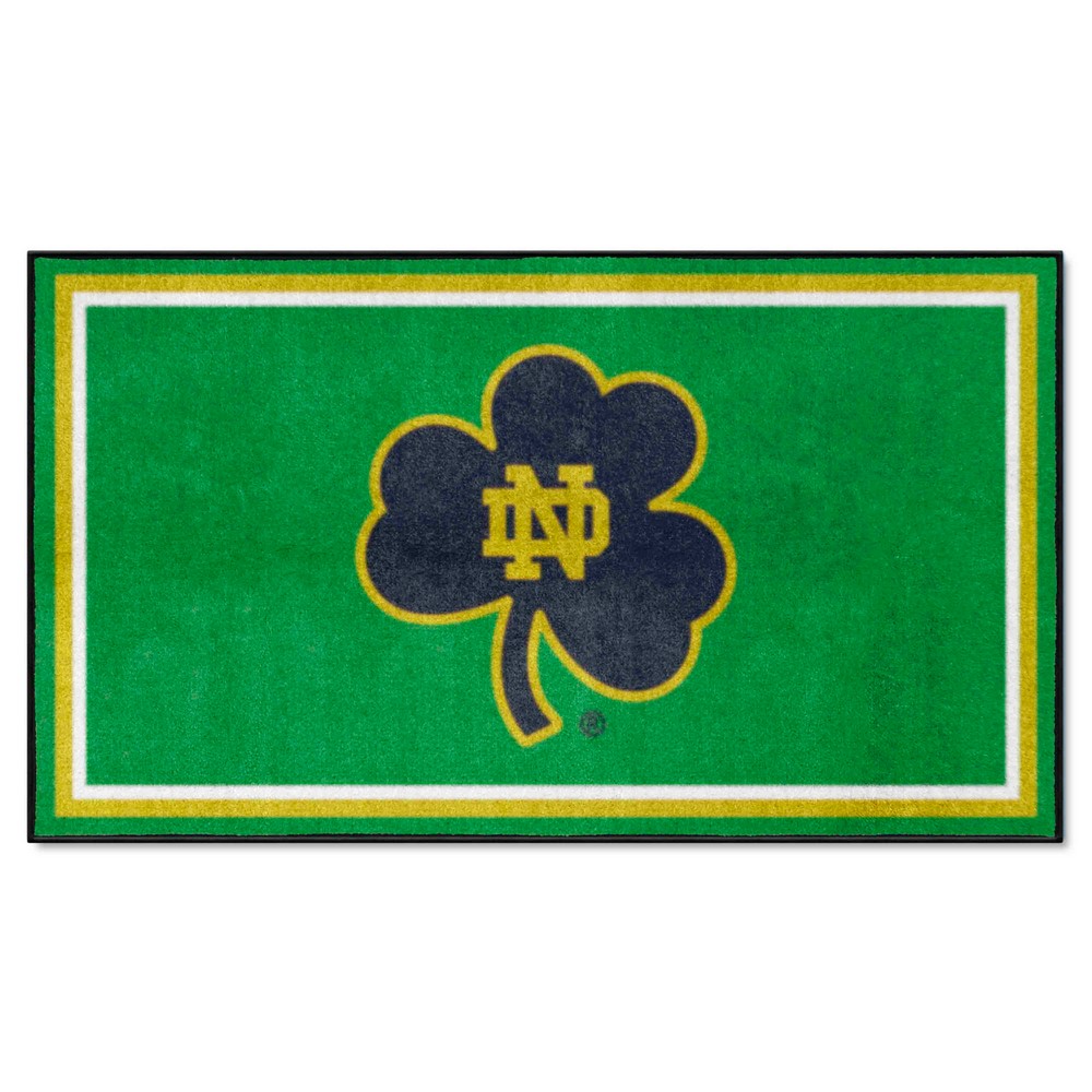 | Notre Dame Fighting Irish 3ft. x 5ft. Plush Area Rug, Clover Logo 23.5 oz., 100% Nylon Face Latex backing for a durable and longer-lasting product Machine made in the USA Non-skid backing to ensure stability Vacuum regularly and spot clean Chromojet-printed in true team colors Notre Dame in Indiana |