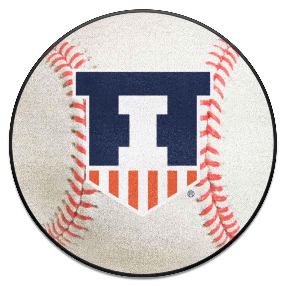 | Illinois Illini Baseball Rug - 27in. Diameter 9 Ounce, 100 % Nylon Face Recycled vinyl backing for a durable and longer-lasting product Machine made and tufted in the USA Non-skid backing with taped borders for added durability Machine washable; vacuum regularly and spot clean for any easy and quick clean Officially licensed and chromojet-printed in true team colors for vibrant, lasting color University of Illinois in Illinois |