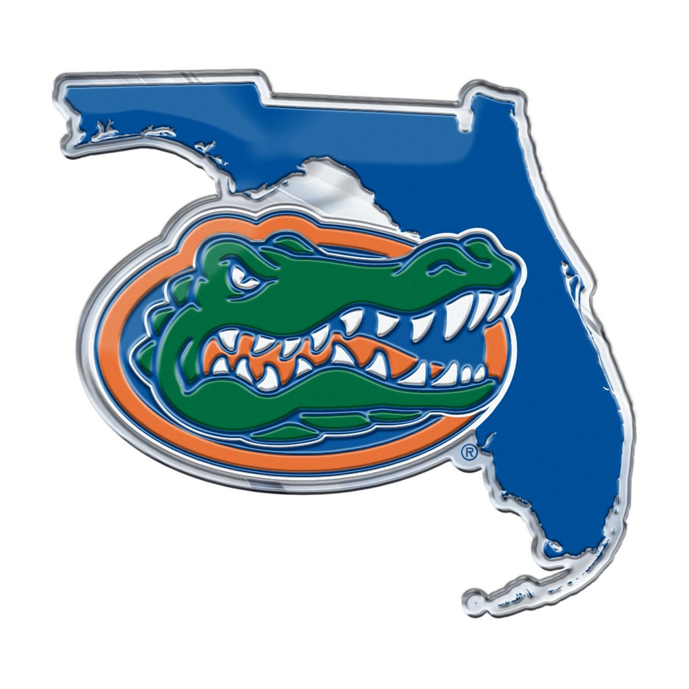 | Florida Gators Team State Aluminum Embossed Emblem Made with corrosion resistant aluminum Dynamic 3D emboss and vibrant color finish Easy application with full auto adhesive backing UV Protected so it will last as long as you want Can be removed without damaging paint or surface Approximately 3.25in x 3.25in University of Florida in Florida |