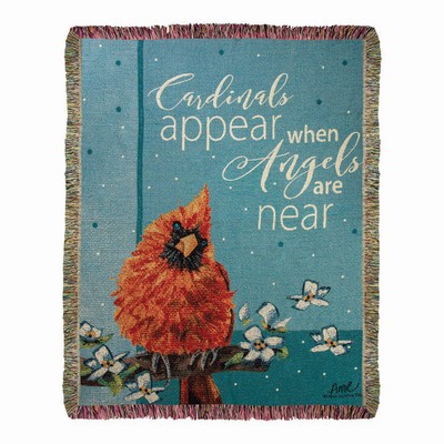 | When A Cardinal Flowers 50x60 Tapestry Throw |