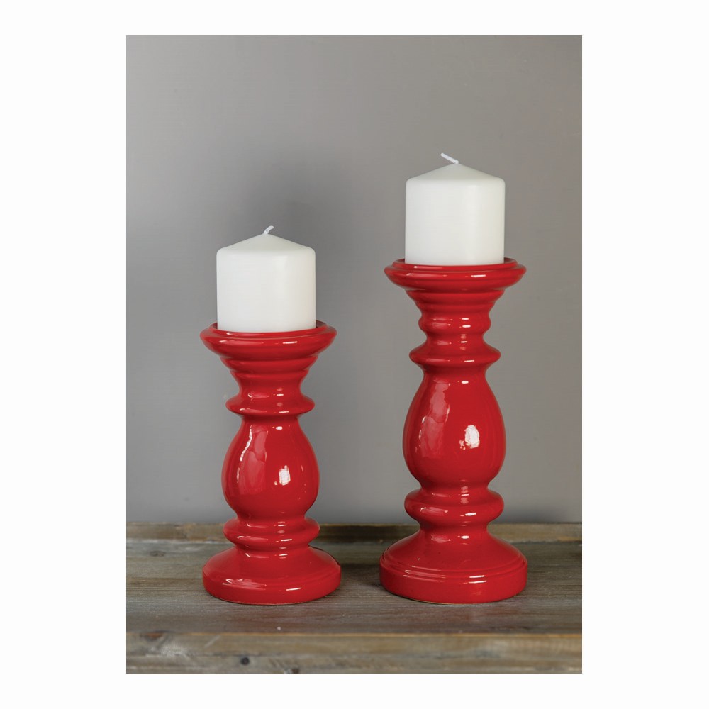 | Camden Red Ceramic Candle Holder Large Set Of 2 is same size |