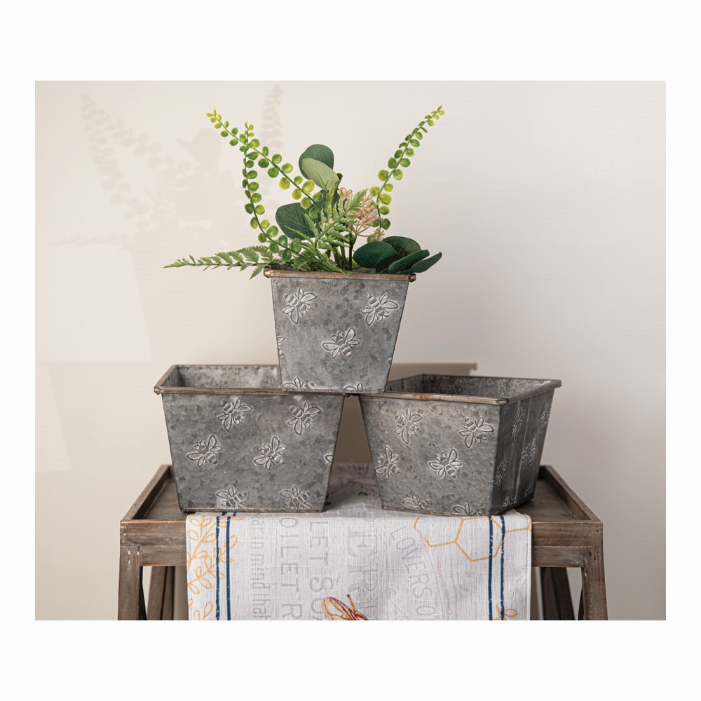 Metal Bucket Bees Square Set Of 3