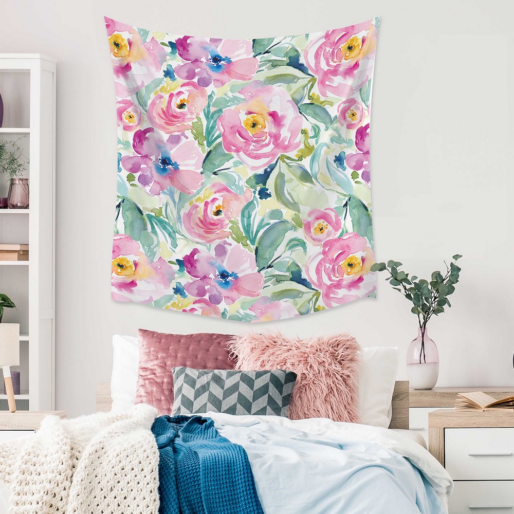 | Feminine florals and free-spirited charm will brighten up your room with this pink and green floral tapestry. Lightweight and easy to hang and display, this tapestry is the perfect accessory for any bedroom or dorm room. RoomMates Color Family: Pinks Graphics Flowers Effect: |