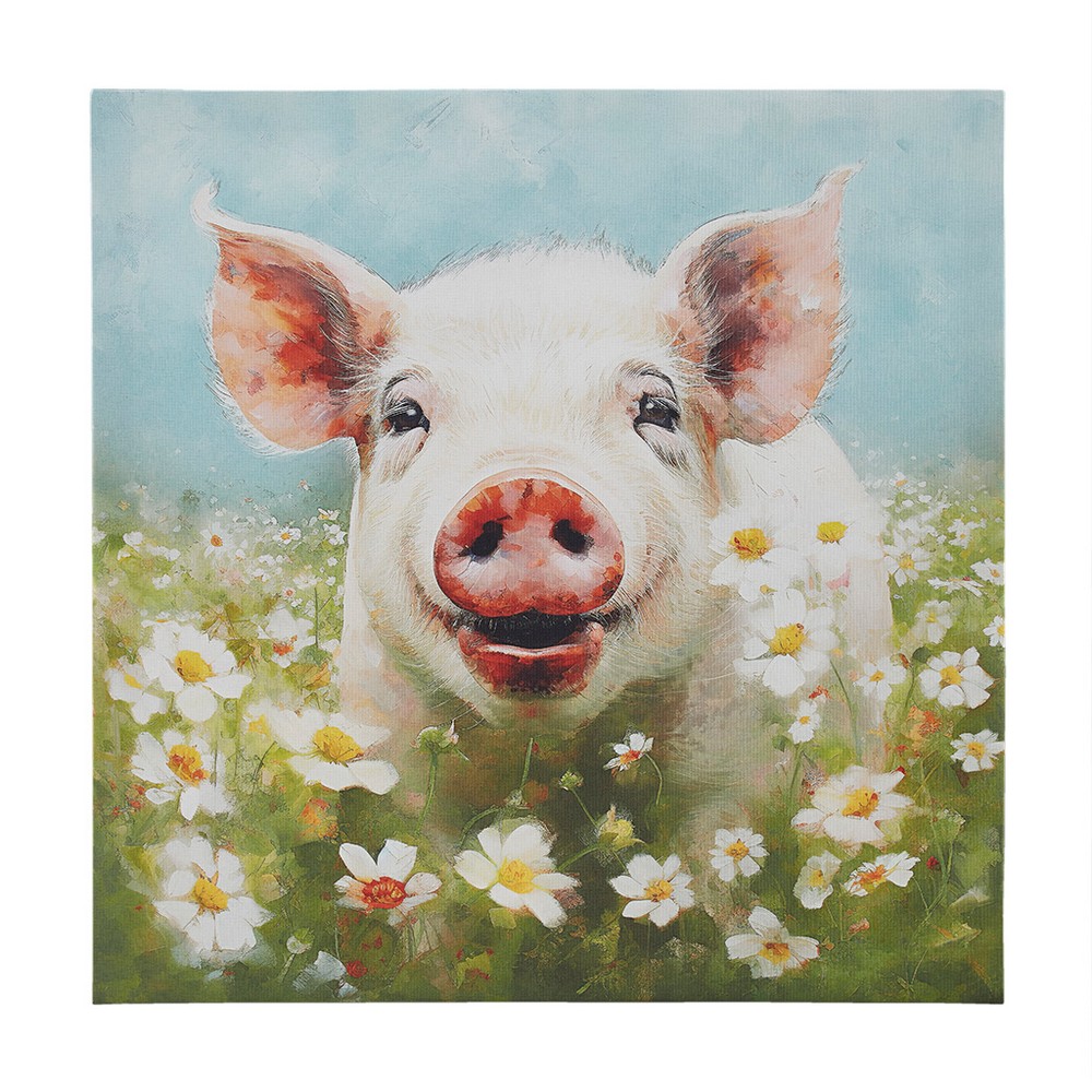 Sunshine Animals Pig/Green Multi Pig Canvas Wall Art