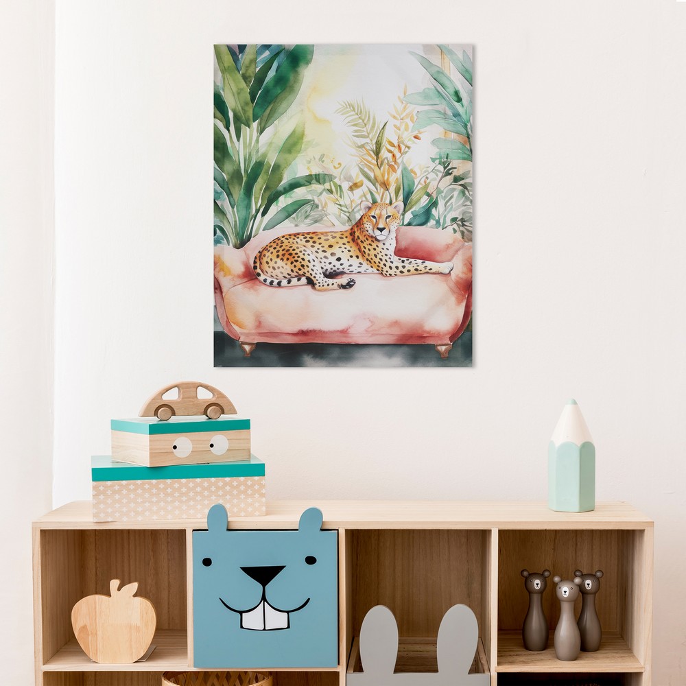 Jungle Feline Cheetah Green Multi Jungle Cheetah Canvas Wall Art