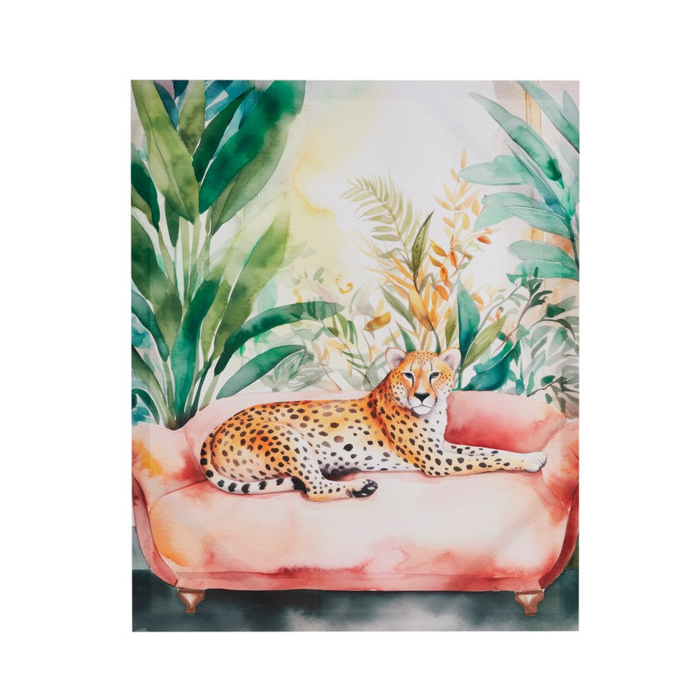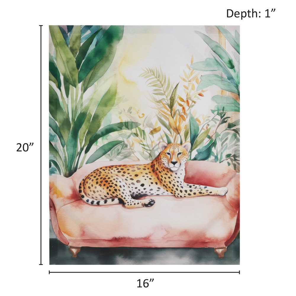 | Madison Park See below Overall: 16"W x 20"H x 1"D MDF: 45% Canvas: 55% Transitional Modern Style Includes 1 Piece(s) Spot clean only Immerse yourself in the captivating allure of our majestic cheetah canvas. This magnificent artwork features a cheetah resting comfortably in the jungle on a plush blush settee, skillfully crafted on canvas. Hanging this masterpiece is a breeze with the pre-installed Sawtooth hanger. Its harmonious blend of blush and green tones adds a touch of elegance to any room. This canvas is designed for indoor use and spot clean only. This exquisite art piece is brought to life by the talented artist, Rene Michel. Elevate your space and let the untamed beauty of the jungle become a part of your home. |
