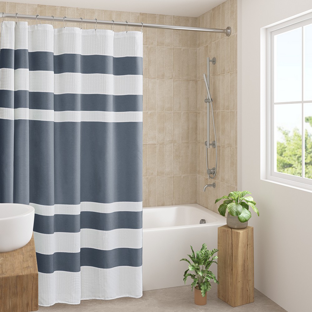 Spa Waffle Dark Blue Shower Curtain with 3M Treatment