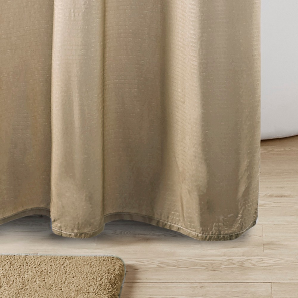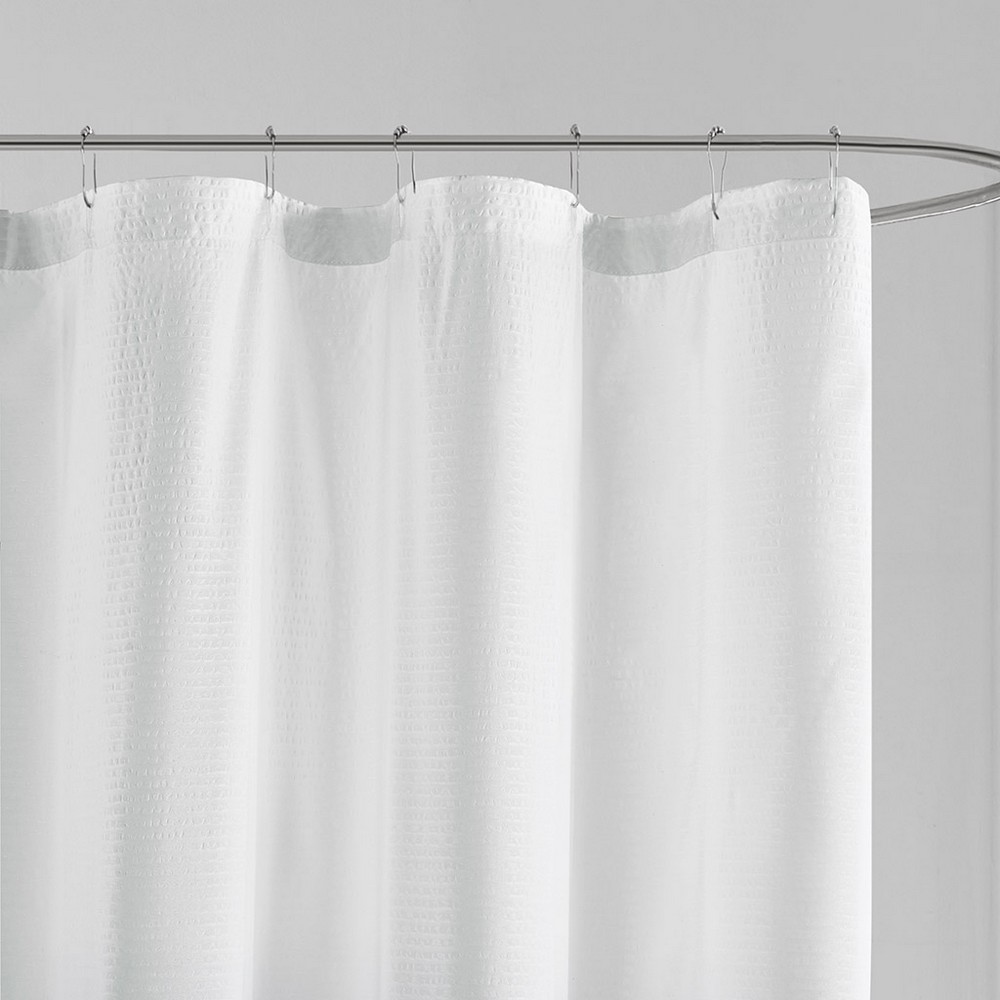 | Madison Park 72x72" 1 Shower Curtain: 72"W x 72"L 100% Polyester Modern/Contemporary Style Includes 1 Piece(s) Machine Washable Add a refreshing touch to your bathroom decor with our Madison Park Ara Ombre Printed Seersucker Shower Curtain. This shower curtain features a taupe ombre print on an embossed seersucker fabric, for a contemporary look that’s rich in texture. The lightest color of the ombre design starts at the top and gradients to a darker color towards the bottom for a naturally soothing look. Machine washable for easy care, this contemporary shower curtain measures 72"x72" and is easy to hang with the 12 button holes at the top. A water repellant liner is not included, and highly recommended for the utmost protection. |