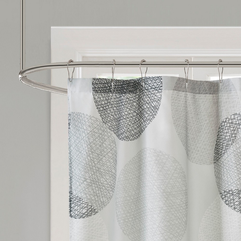 | Madison Park Essentials 72x72" 1 Shower Curtain: 72x72" 85gsm microfiber, printed Casual Style Includes 1 Piece(s) MACHINE WASH COLD, GENTLE CYCLE, AND SEPARATELY. DO NOT BLEACH. TUMBLE DRY LOW, REMOVE PROMPTLY. DO NOT IRON. IF THERE IS NO FREE MOVEMENT IN THE WASHER OR DRYER, USE LARGE CAPACITY COMMERCIAL WASHER/DRYER. Knowles instantly updates your bathroom for a clean modern look. A circular print in different shades of gray covers this soft gray light weight shower curtain. Each shower curtain measure 72"x72" and is finished with 12 button holes at the top making it easy to hang; hooks, rod, and a water repellant liner are not included and will need to be purchased separately. |