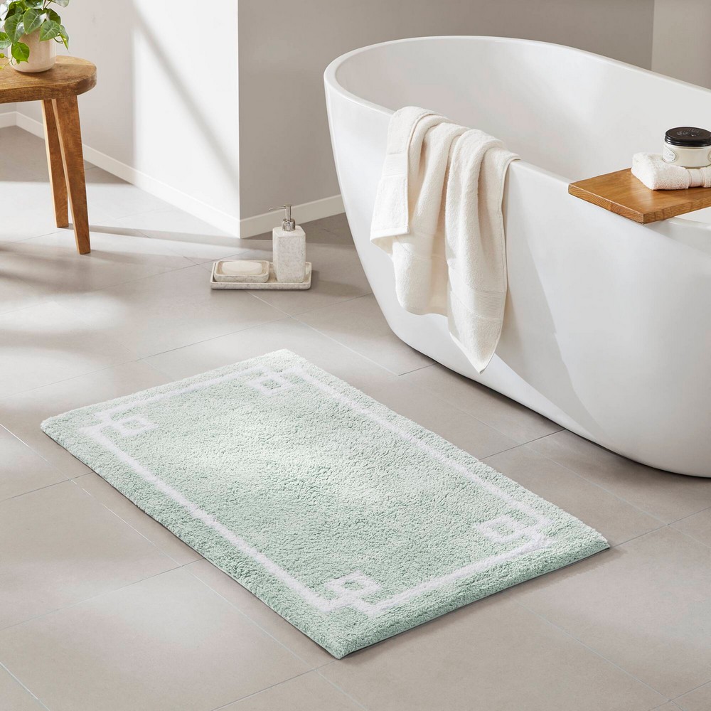 The Madison Park Evan Cotton Tufted Bath Rug provides the perfect balance of comfort and style to update your bathroom. This tufted bath rug features a contrasting white border on a soft colored ground creating a clean hotel look, while the plush medium pile weight provides pure soft comfort for your feet. The light latex coated back makes this bath rug skid resistance for better safety, while also keeping rug in place throughout the day. Machine washable for easier care, this cotton bath rug is also OEKO-TEX certified, meaning it does not contain any harmful substances or chemicals ensuring quality comfort and wellness. Bath rugs are sold separately in multiple sizes and colors, making it easy to complete any bathroom size and decor!