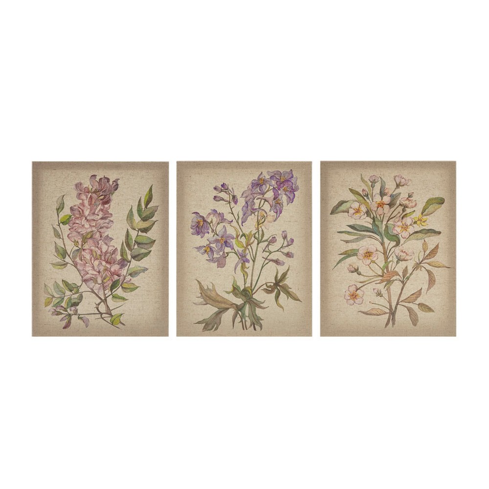 Linen Botanicals Multi Illustration 3-piece Canvas Wall Art Set