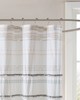 Nea Off White/Gray Cotton Printed Shower Curtain with Trims