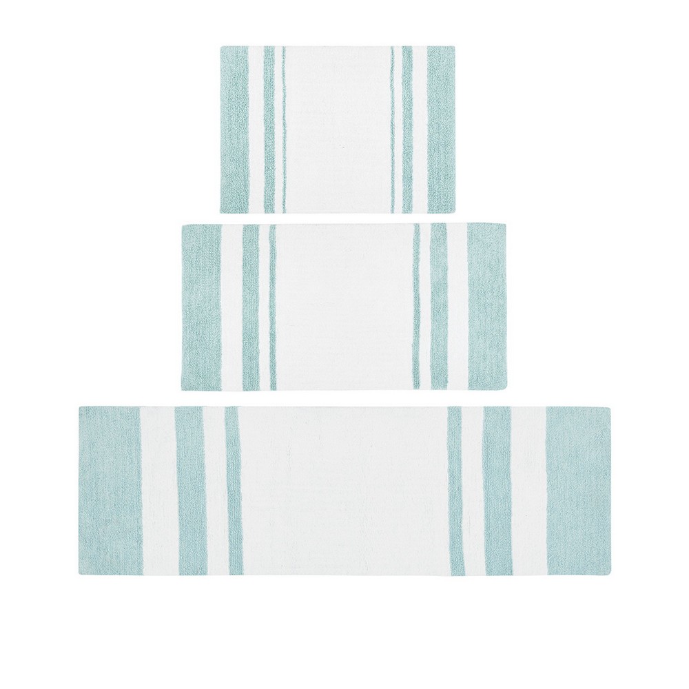 Update your bathroom with the Madison Park Spa Cotton Bath Rug. This 100% cotton, reversible rug has both cut and looped cotton on each side in contrast fashion colors to a white ground for a spa look within your home. The soft highly absorbent cotton on both sides will feel fluffy and absorbent on your feet! A rug pad is highly recommended for safety and to keep rug secured in place. Due to the looped cotton construction, some threads may come undone after wash/dry; simply cut and trim any loose threads by hand as needed. Machine washable for easy care; Complete the look with coordinating shower curtain, available and sold separately.