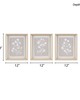 | Madison Park See below 3 Pieces: 12"W x 14"H x1.5"D (3) Glass Spec: 10.61"W x 12.61"H Glass: 40% Polystyrene: 25% MDF: 25% Paper: 10% Casual Style Includes 3 Piece(s) Spot clean only Add a warm and casual accent to your home with the Madison Park Fair Florets 3-piece Framed Glass Wall Art Set. Each framed piece showcases a soft white flower printed on a neutral hued ground, then placed under glass, for an elevated gallery look and feel. A natural wood tone frame adds the finishing touch, with its unique sloped moulding which creates beautiful depth and dimension. Comes as a 3 piece set; each piece measures 12x14” and has Sawtooth fixtures on the reverse for easy hanging. Simply display this botanical wall art set together or separately to create a more inviting and delightful space in your home. Spot clean only. |