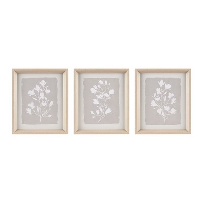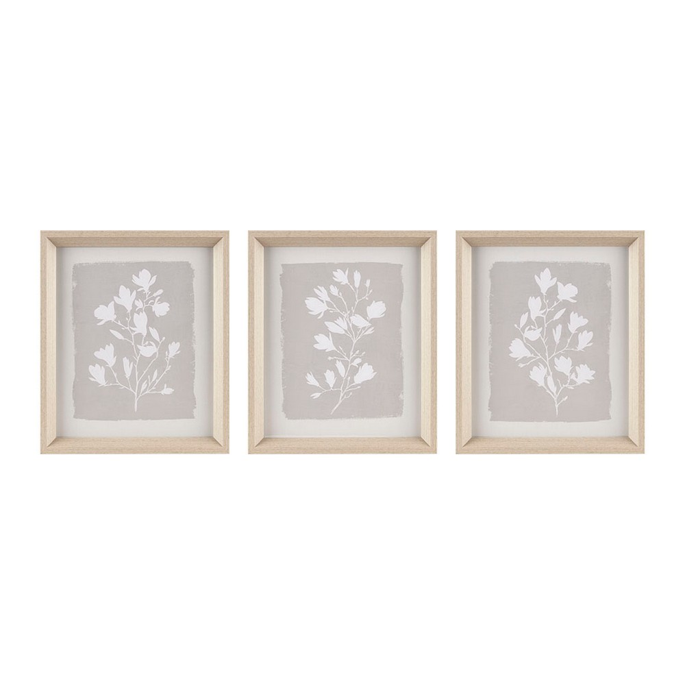 Fair Florets Beige 3-piece Framed Glass Wall Art Set