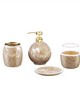 | Madison Park See below 1 Soap Dispenser: 4.33"W x 4.33"L x 6.5"H 1 Toothbrush Holder: 3.54"W x 3.54"L x 4.13"H 1 Tumbler: 3.54"W x 3.54"L x 3.86"H 1 Ring Tray: 4.92"W x 4.92"L x 0.59"H Mosaic Modern/Contemporary Style Includes 1 Piece(s) Wipe clean with damp cloth Add an alluring radiance to your bathroom with the Madison Park Mosaic 4 Piece Bath Accessory Set. Flaunting a crackle glass mosaic design, this bathroom accessory set includes a soap dispenser, toothbrush holder, a tumbler, and a ring dish. Maximize your counter space by incorporating this accessory set in your bathroom for a glamorous touch. |