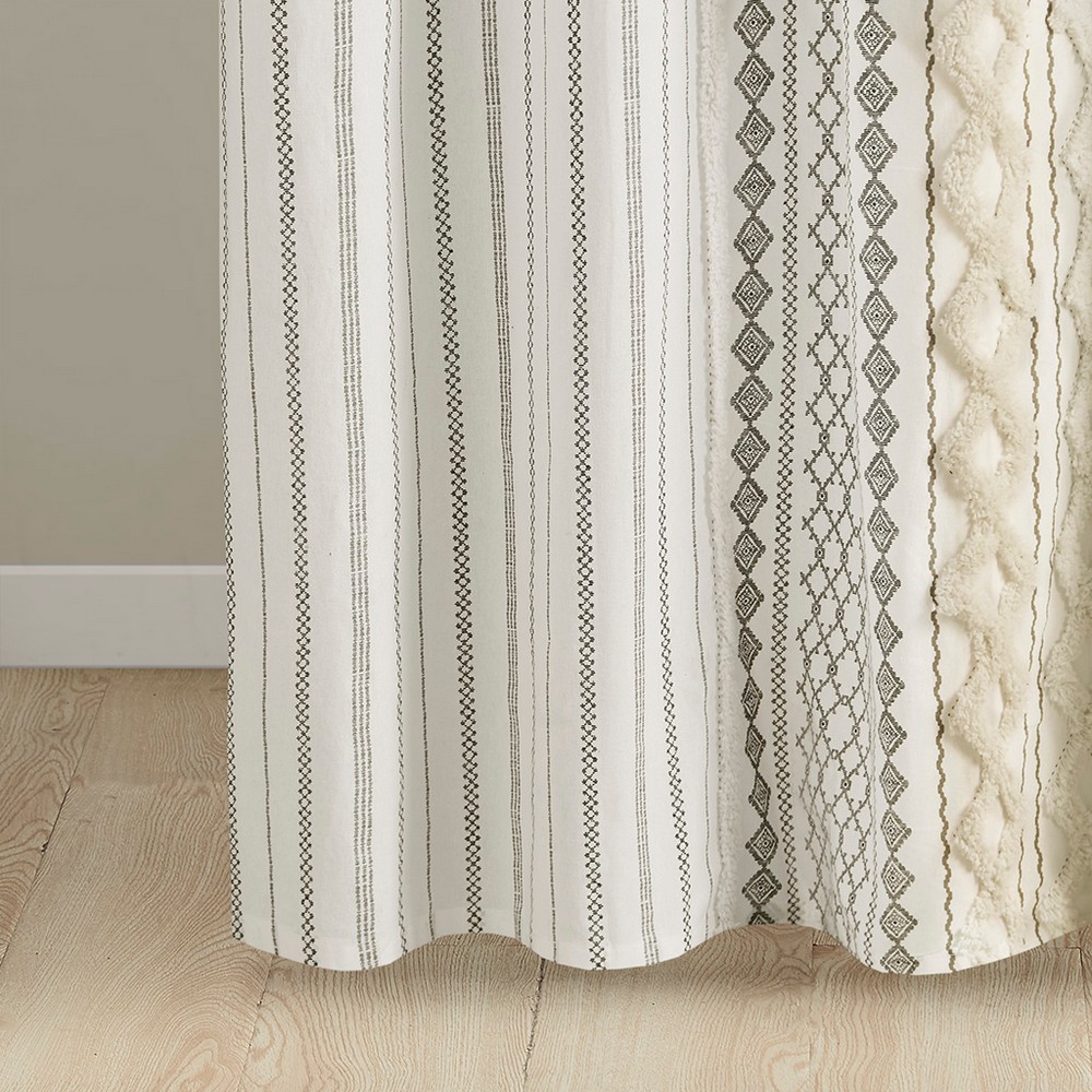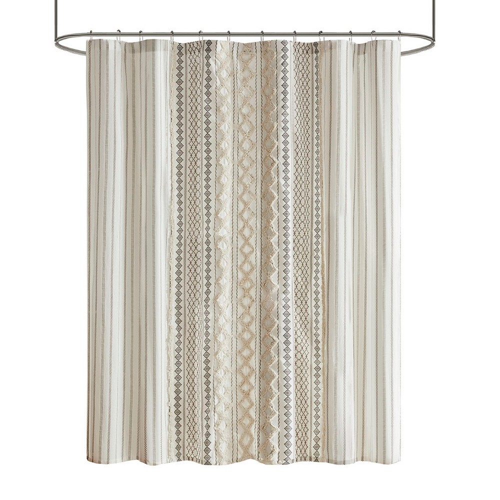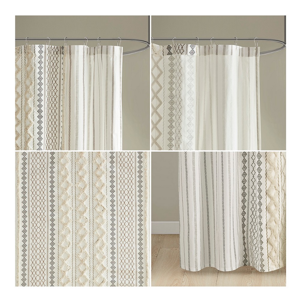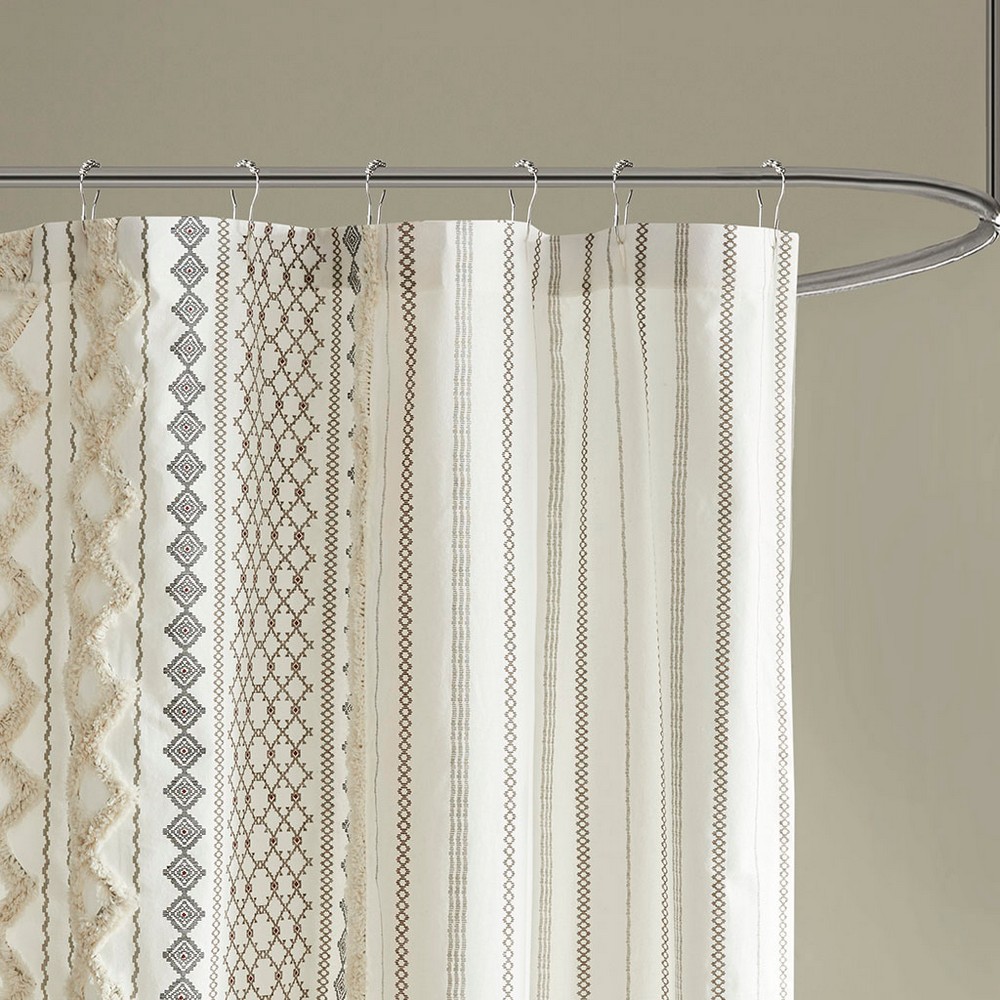 Imani Ivory Cotton Printed Shower Curtain with Chenille