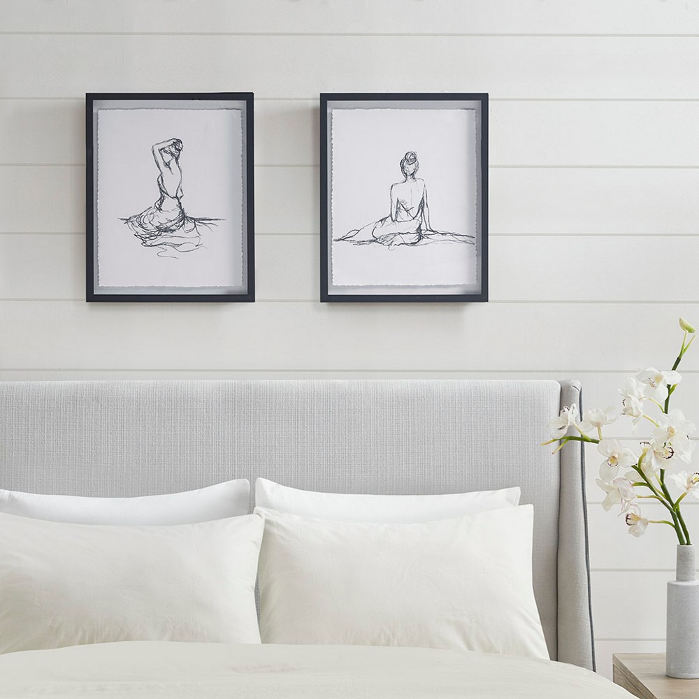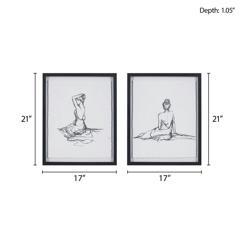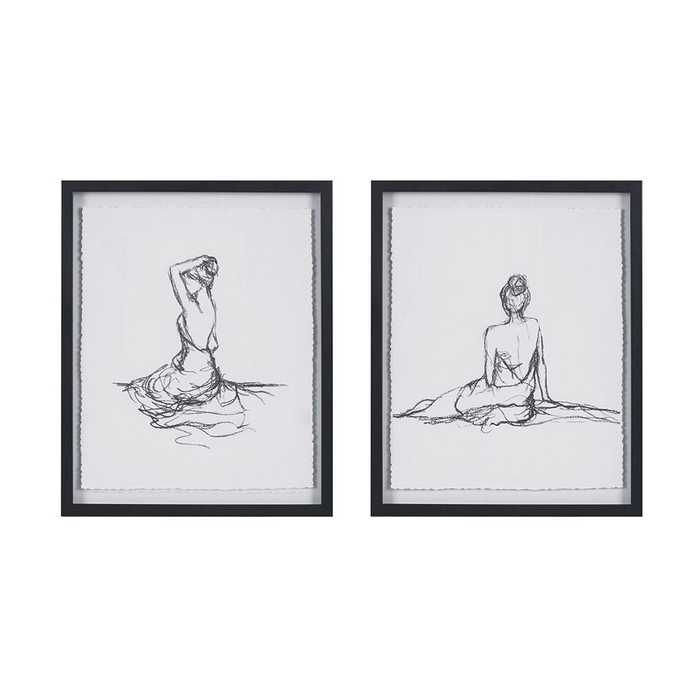 Feminine Figures Black/White Sketch 2-piece Framed Glass and Matted Wall Art Set
